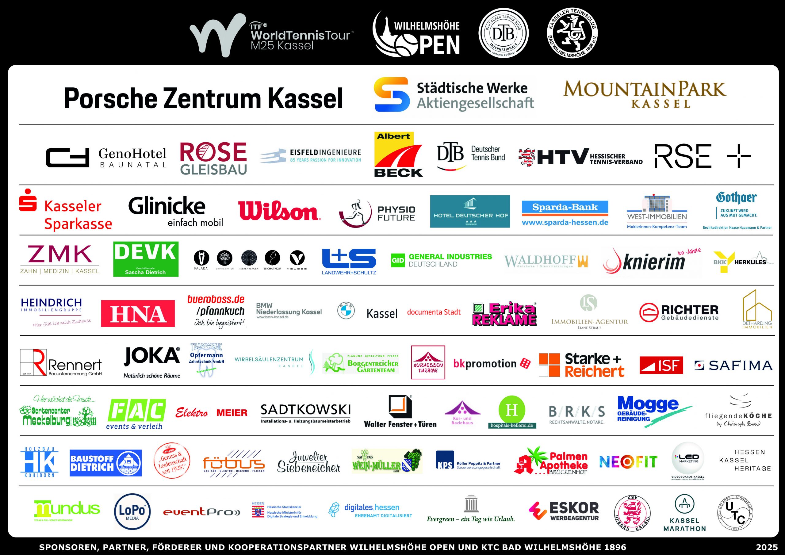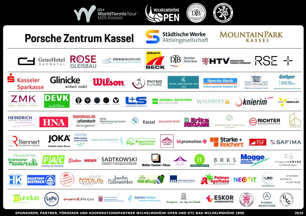 Zahlreiche Sponsoren und Partner unterstützen den KTC Bad Wilhelmshöhe 1896 auf dem Weg zur Top-Adresse im Tennissport in Nordhessen. Für die Werbemöglichkeiten gibt es viele Module, von Bannerwerbung über Team- und Nachwuchsförderung, Unterstützung bei Projekten oder bei der Umsetzung innovativer Ideen.